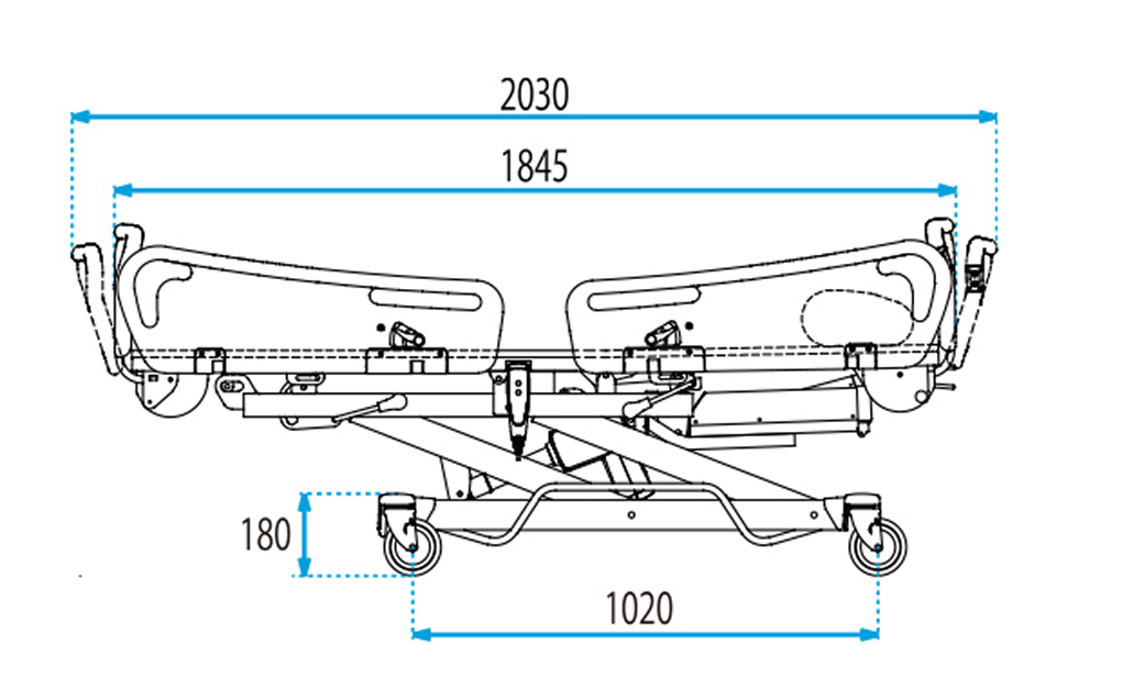四方がサイドレールとガードに囲まれており、サイドレール4枚はそれぞれに解除レバーがついており安全です。(NS-200はサイドレール2枚となります)