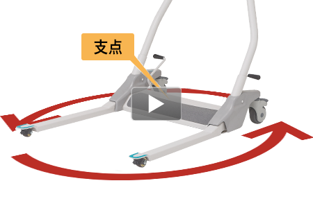 走行性の高いキャスターや旋回サポートなどの新機能により、固定式リフトのような取り回しを実現しました。ご利用者を吊り上げた状態でも軽い力で移動・方向転換ができます。